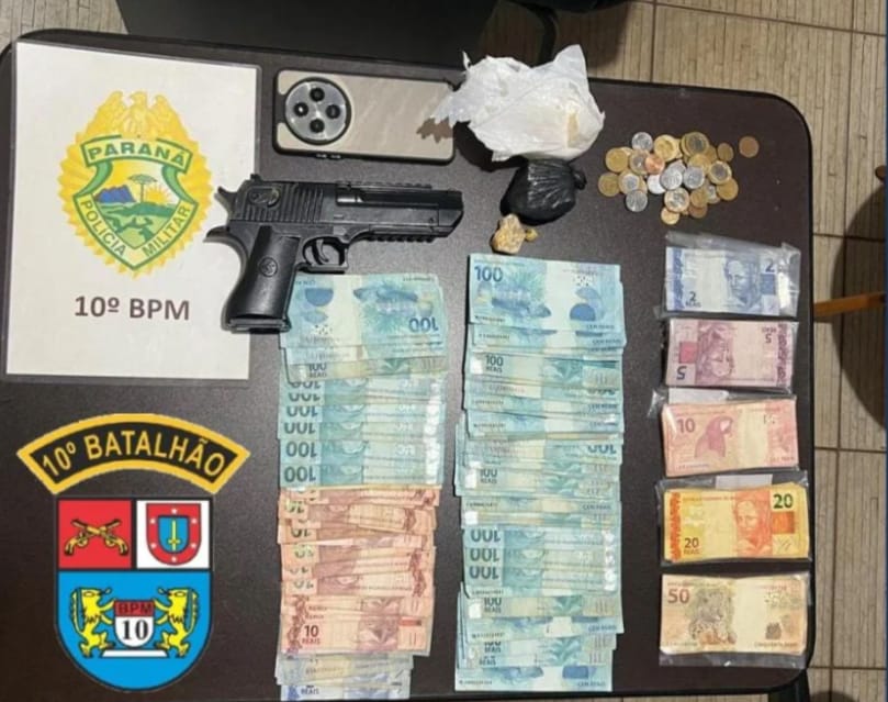 Os policiais encontraram, ainda, um simulacro de arma de fogo no imóvel. Também apreenderam um celular.