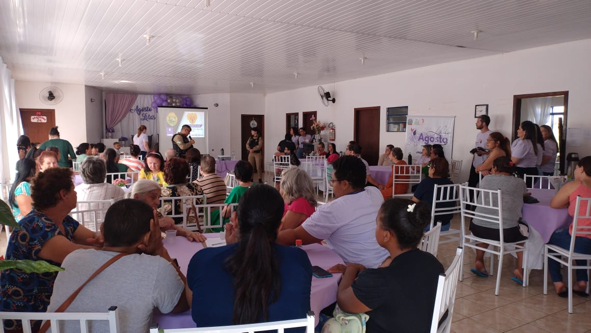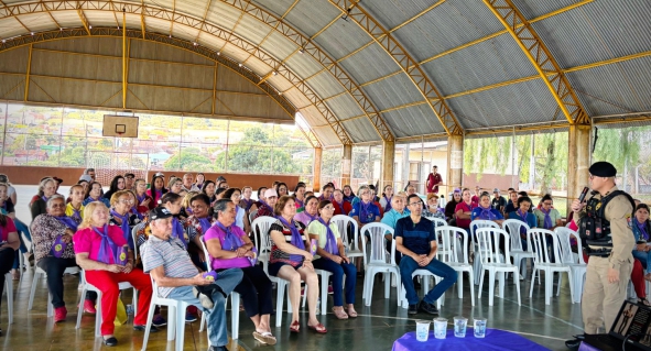 Em Califórnia a palestra da Patrulha Maria da Penha foi realizada no Centro da Melhor Idade e abrangeu grupos de fortalecimento de vínculos atendidos pela Secretaria de Assistência Social. Imagem: Rádio Califórnia FM