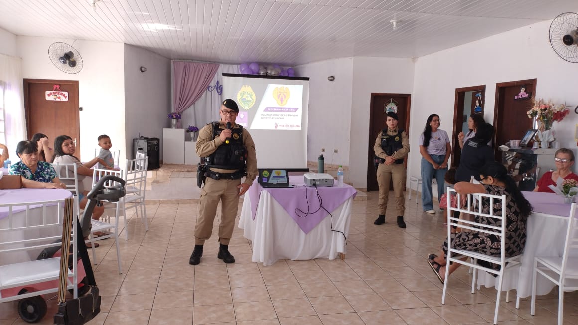 Ao levar o Programa Mulher Segura, os policiais apresentam, uma iniciativa governamental que visa combater e prevenir a violência de gênero, com foco em feminicídio, estupro e violência doméstica